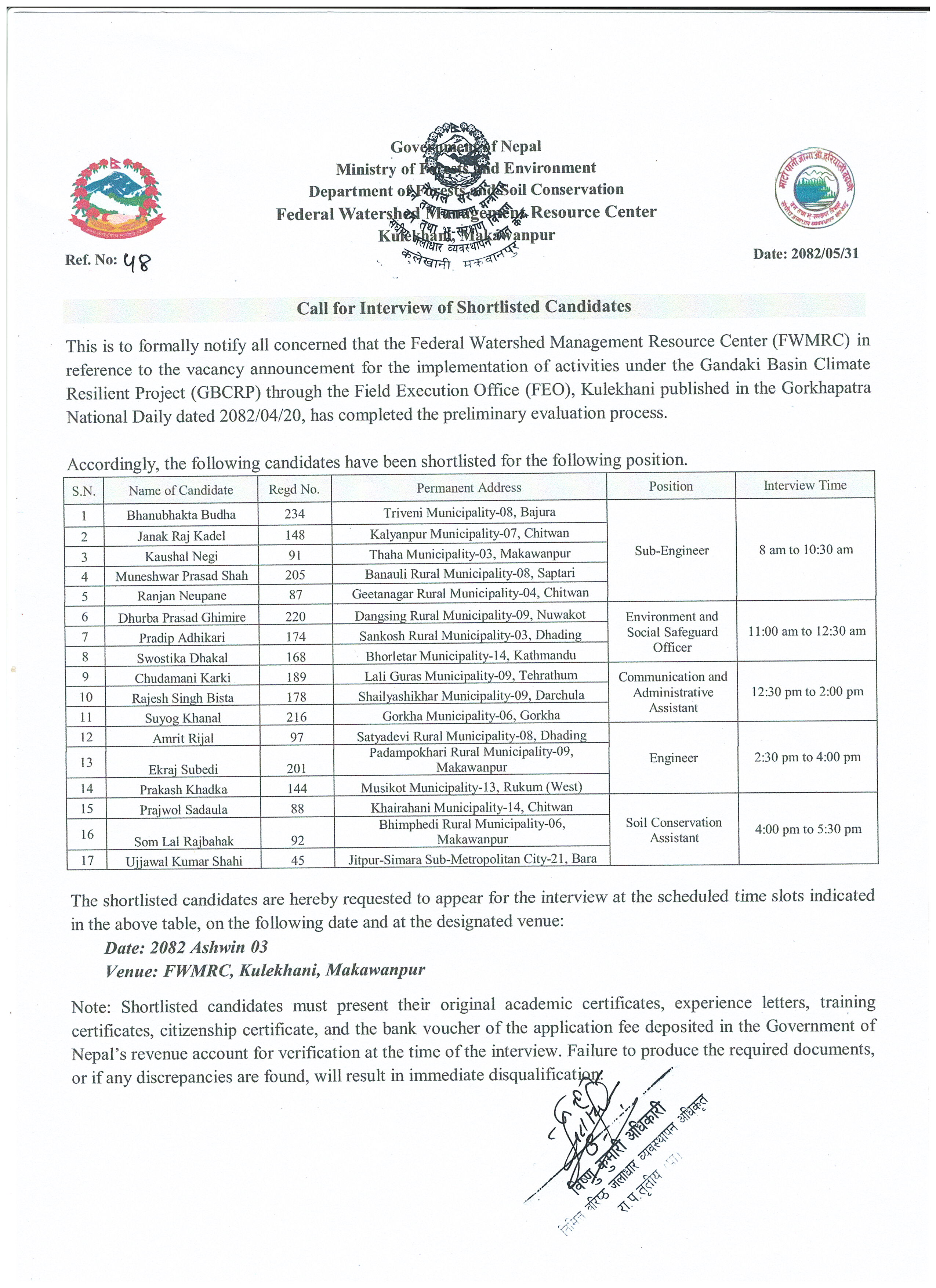कर्मचारी पदपूर्ति गर्ने सम्बन्धि सूचना